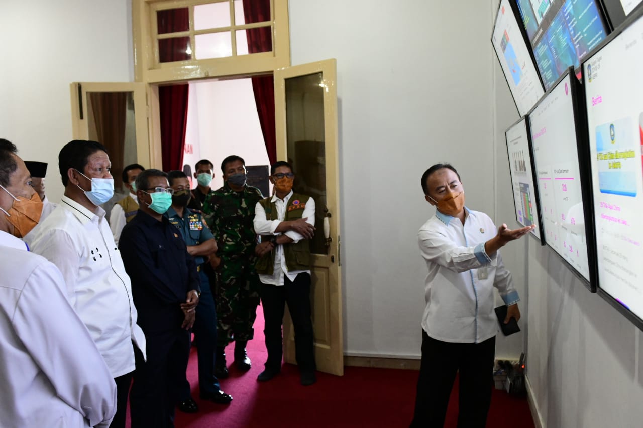 Bapak Plt. Gubernur Kepri bersama Kajati, Danlantamal, Kasrem, dan Dalanud melakukan inspeksi ke Pusdalops Percepatan Penanganan Covid 19 (Rabu 8/4)